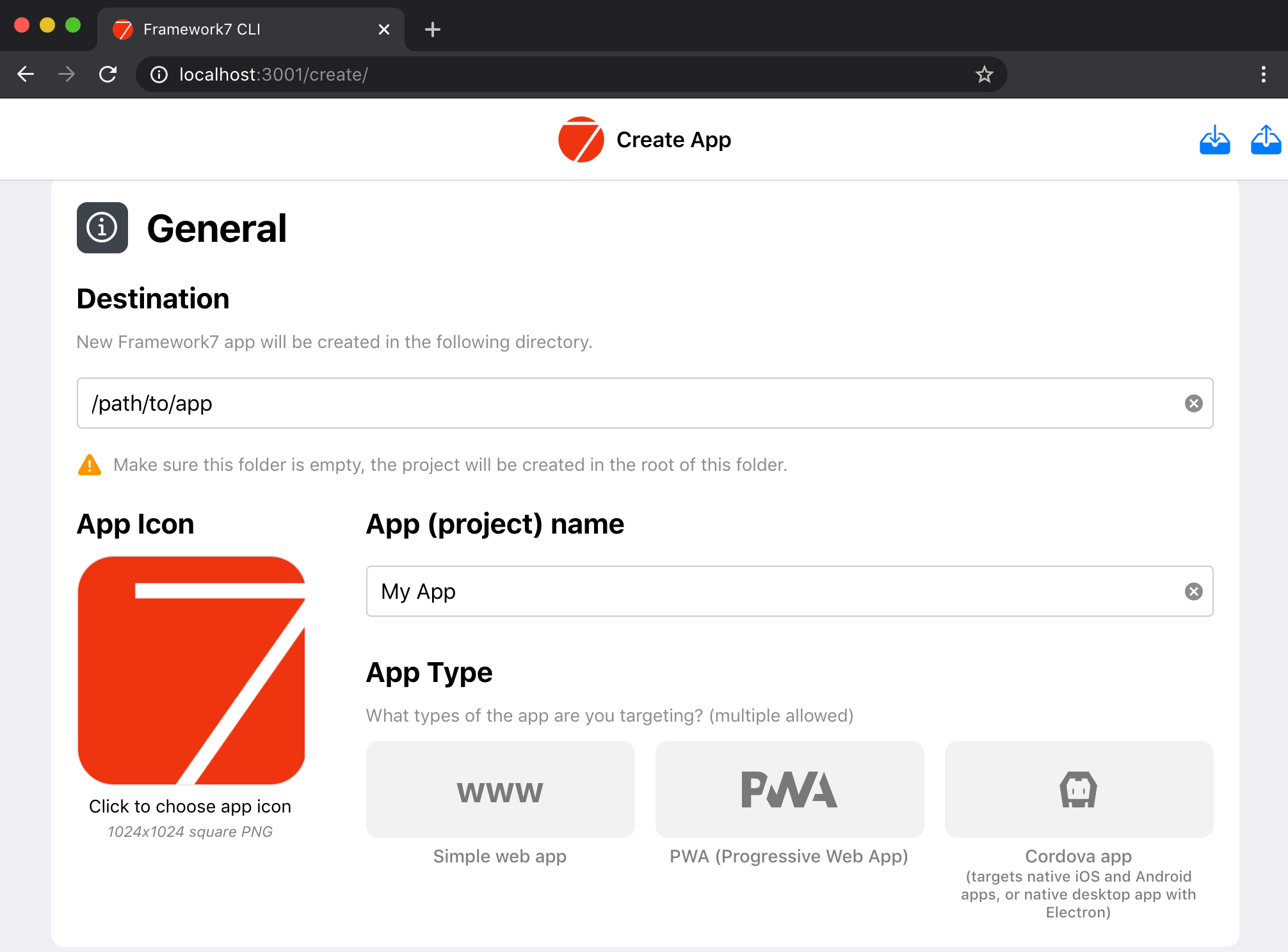 $ framework7 create