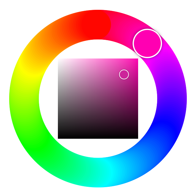 | wheel | Hue wheel with Saturation-Brightness spectrum inside